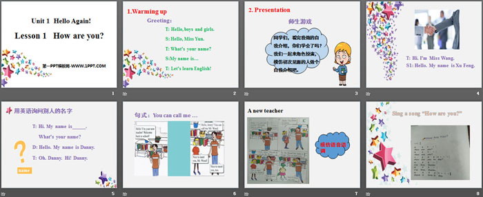 关键词:冀教版四年级下册英语PPT课件免费下载,How are you?PPT下载,Hello Again!PPT下载,.PPT格式;