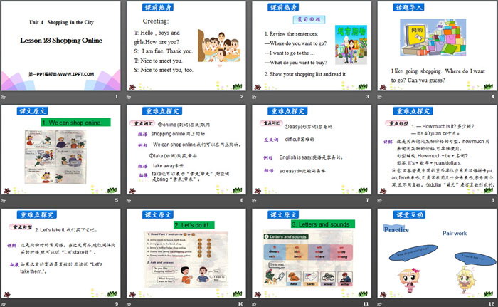 关键词:冀教版四年级上册英语PPT课件免费下载,Shopping OnlinePPT下载,Shopping in the CityPPT下载,.PPT格式;