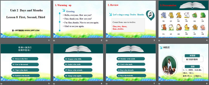 关键词:冀教版四年级下册英语PPT课件免费下载,First,Second,ThirdPPT下载,Days and MonthsPPT下载,.PPT格式;