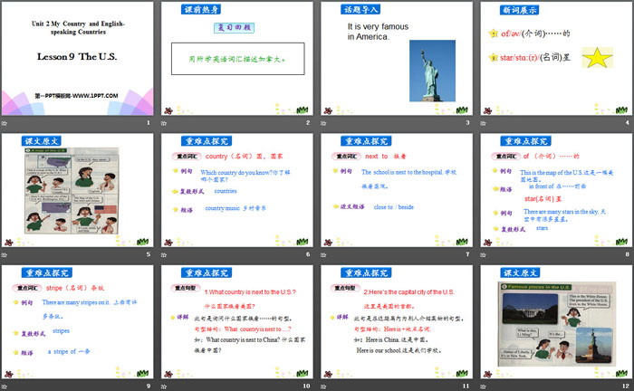 关键词:冀教版五年级上册英语PPT课件免费下载,The U.S.PPT下载,My Country and English-speaking CountriesPPT下载,.PPT格式;