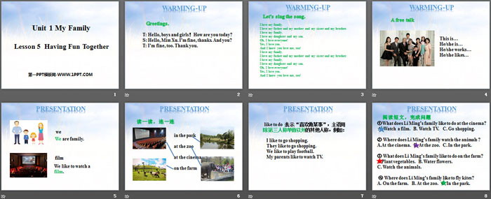 关键词:冀教版五年级上册英语PPT课件免费下载,Having Fun TogetherPPT下载,My FamilyPPT下载,.PPT格式;