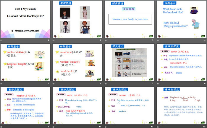 关键词:冀教版五年级上册英语PPT课件免费下载,What Do They Do?PPT下载,My FamilyPPT下载,.PPT格式;