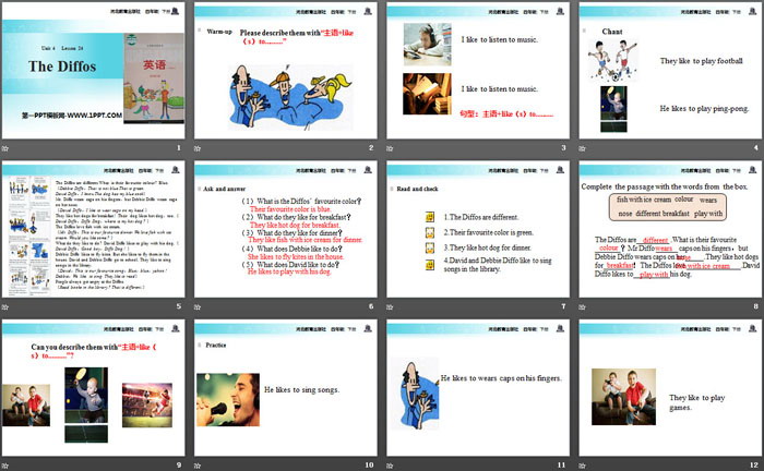 关键词:冀教版四年级下册英语PPT课件免费下载,The DiffosPPT下载,My FavouritesPPT下载,.PPT格式;