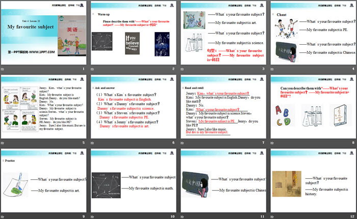 My Favourite SubjectPPT,第四部分内容:Read and retell