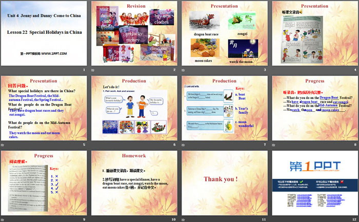 关键词:冀教版五年级上册英语PPT课件免费下载,Special Holiday in ChinaPPT下载,Jenny and Danny Come to ChinaPPT下载,.PPT格式;