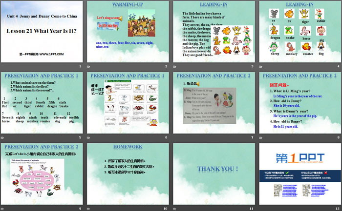 关键词:冀教版五年级上册英语PPT课件免费下载,What Year Is It?PPT下载,Jenny and Danny Come to ChinaPPT下载,.PPT格式;