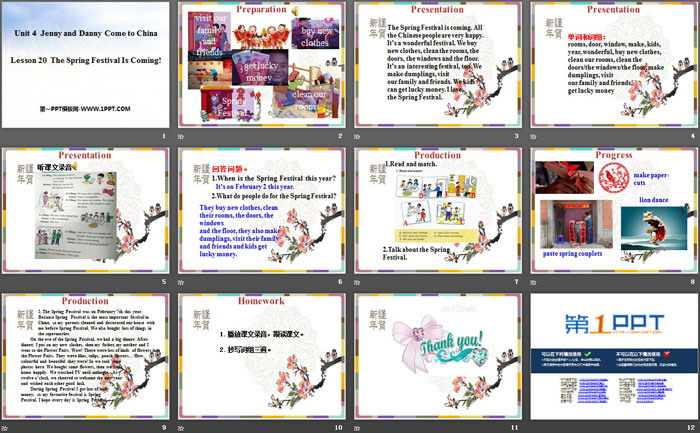 关键词:冀教版五年级上册英语PPT课件免费下载,The Spring Festival Is Coming!PPT下载,Jenny and Danny Come to ChinaPPT下载,.PPT格式;