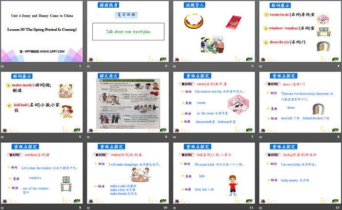 关键词:冀教版五年级上册英语PPT课件免费下载,The Spring Festival Is Coming!PPT下载,Jenny and Danny Come to ChinaPPT下载,.PPT格式;