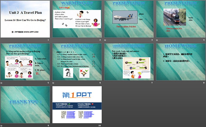 关键词:冀教版五年级上册英语PPT课件免费下载,How Can We Go to Beijing?PPT下载,A Travel PlanPPT下载,.PPT格式;