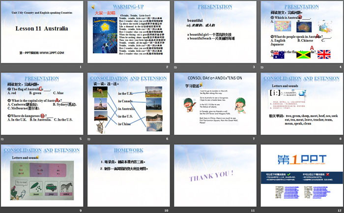 关键词:冀教版五年级上册英语PPT课件免费下载,AustraliaPPT下载,My Country and English-speaking CountriesPPT下载,.PPT格式;