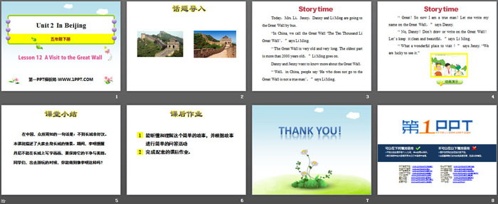 关键词:冀教版五年级下册英语PPT课件免费下载,A Visit to the Great WallPPT下载,In BeijingPPT下载,.PPT格式;