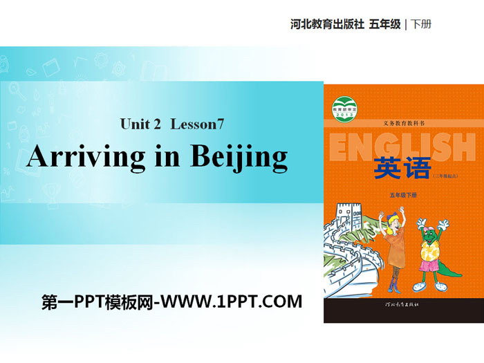关键词:冀教版五年级下册英语PPT课件免费下载,Arriving in BeijingPPT下载,In BeijingPPT下载,.PPT格式;