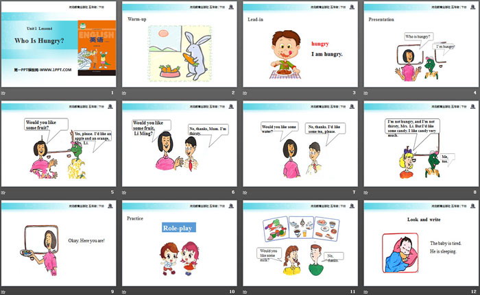 关键词:冀教版五年级下册英语PPT课件免费下载,Who is Hungry?PPT下载,Going to BeijingPPT下载,.PPT格式;