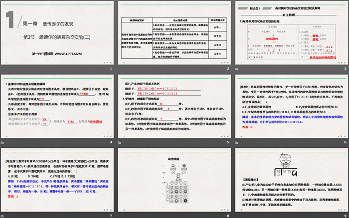 孟德尔的豌豆杂交实验PPT,第二部分内容:两对相对性状的杂交实验过程及解释