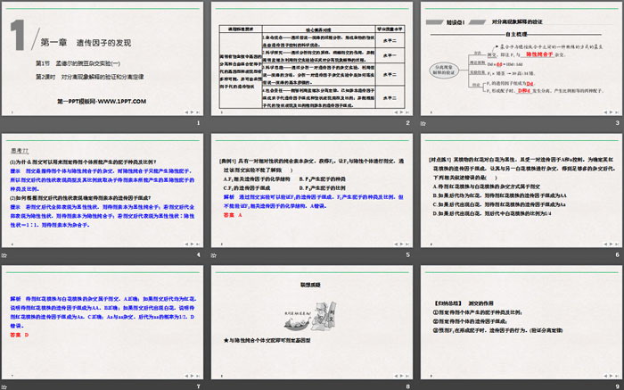 孟德尔的豌豆杂交实验PPT,第三部分内容:分离定律、假说-演绎法