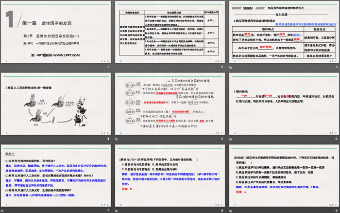 关键词:人教版高中生物必修二PPT课件免费下载,孟德尔的豌豆杂交实验PPT下载,遗传因子的发现PPT下载,一对相对性状的杂交实验过程和解释PPT下载,.PPT格式;