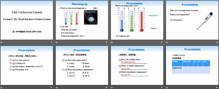 关键词:冀教版六年级上册英语PPT课件免费下载,Mr.Wood Teaches a Science LessonPPT下载,School in CanadaPPT下载,.PPT格式;