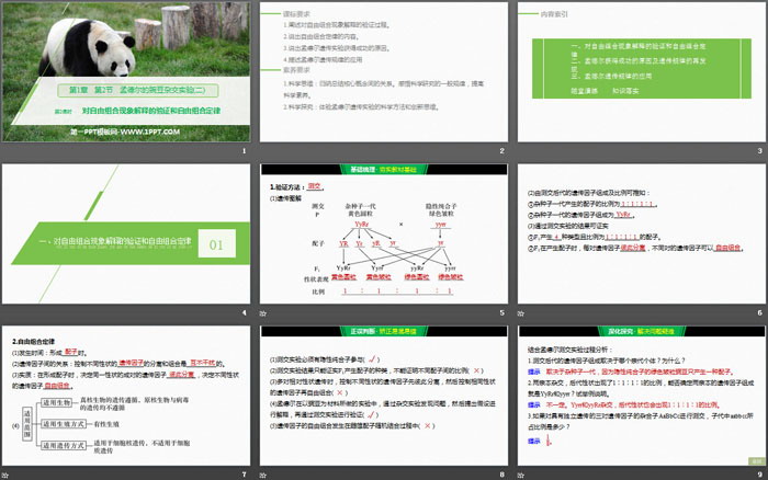 关键词:人教版高中生物必修二PPT课件免费下载,孟德尔的豌豆杂交实验PPT下载,遗传因子的发现PPT下载,对自由组合现象解释的验证和自由组合定律PPT下载,.PPT格式;