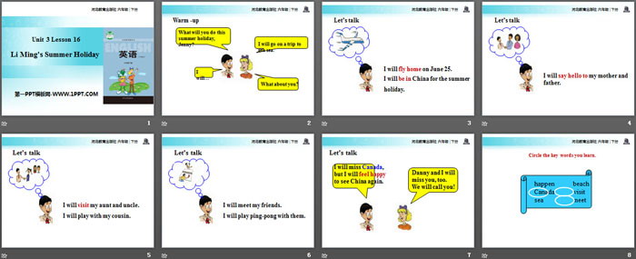 关键词:冀教版六年级下册英语PPT课件免费下载,Li Ming's Summer HolidayPPT下载,What Will You Do This Summer?PPT下载,.PPT格式;