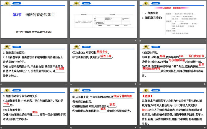 关键词:人教版高中生物必修一PPT课件免费下载,细胞的衰老和死亡PPT下载,细胞的生命历程PPT下载,.PPT格式;