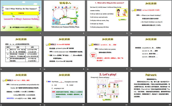 Li Ming's Summer HolidayPPT,第二部分内容:知识讲解