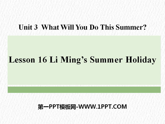 关键词:冀教版六年级下册英语PPT课件免费下载,Li Ming's Summer HolidayPPT下载,What Will You Do This Summer?PPT下载,.PPT格式;
