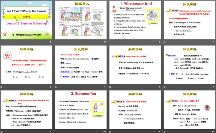 关键词:冀教版六年级下册英语PPT课件免费下载,Summer Is Coming!PPT下载,What Will You Do This Summer?PPT下载,.PPT格式;