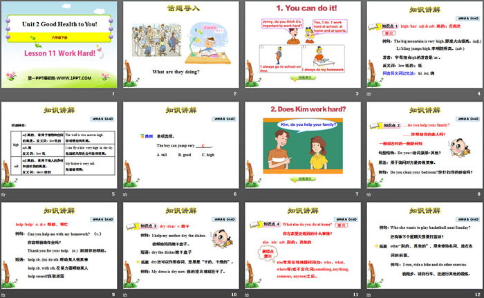 关键词:冀教版六年级下册英语PPT课件免费下载,Work Hard!PPT下载,Good Health to You!PPT下载,.PPT格式;