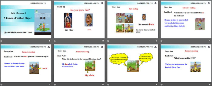 关键词:冀教版六年级下册英语PPT课件免费下载,A Famous Football PlayerPPT下载,SportsPPT下载,.PPT格式;