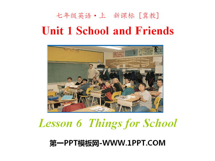 关键词:冀教版七年级上册英语PPT课件免费下载,Things for schoolPPT下载,School and FriendsPPT下载,.PPT格式;