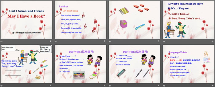 关键词:冀教版七年级上册英语PPT课件免费下载,May I Have a Book?PPT下载,School and FriendsPPT下载,.PPT格式;