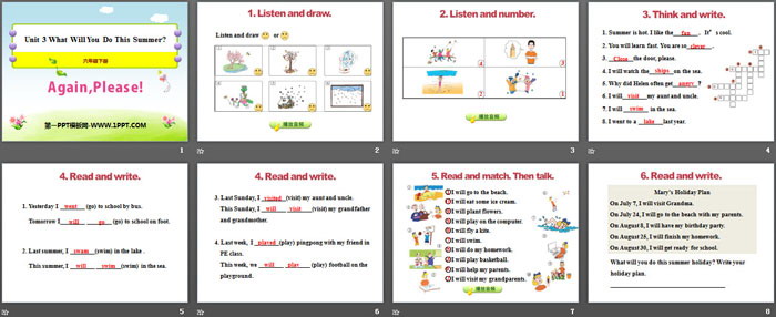 关键词:冀教版六年级下册英语PPT课件免费下载,Again,Please!PPT下载,What Will You Do This Summer?PPT下载,.PPT格式;