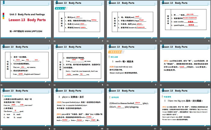 关键词:冀教版七年级上册英语PPT课件免费下载,Body PartsPPT下载,Body Parts and FeelingsPPT下载,.PPT格式;