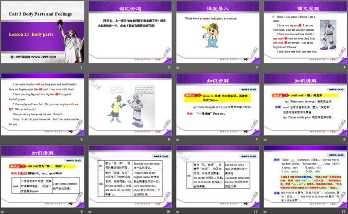 关键词:冀教版七年级上册英语PPT课件免费下载,Body PartsPPT下载,Body Parts and FeelingsPPT下载,.PPT格式;