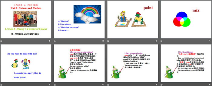 关键词:冀教版七年级上册英语PPT课件免费下载,Danny's Favourite ColourPPT下载,Colours and ClothesPPT下载,.PPT格式;