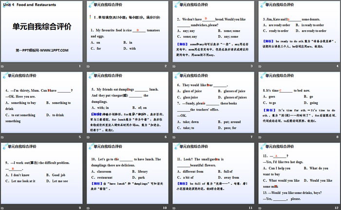 《单元自我综合评价》Food and Restaurants PPT