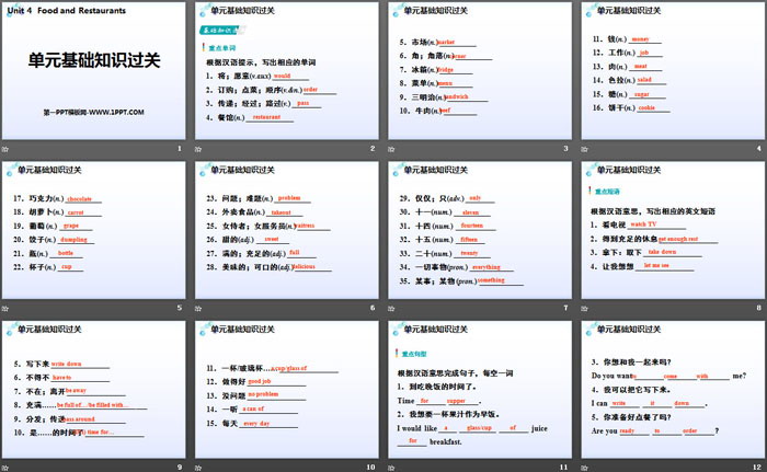 《单元基础知识过关》Food and Restaurants PPT