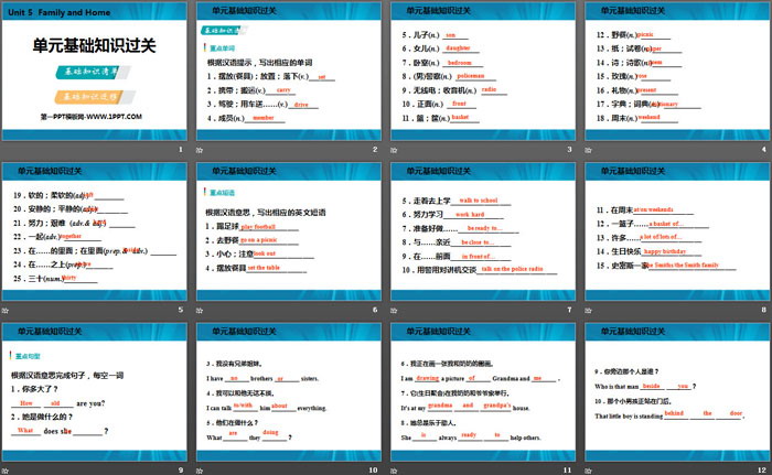 《单元基础知识过关》Family and Home PPT