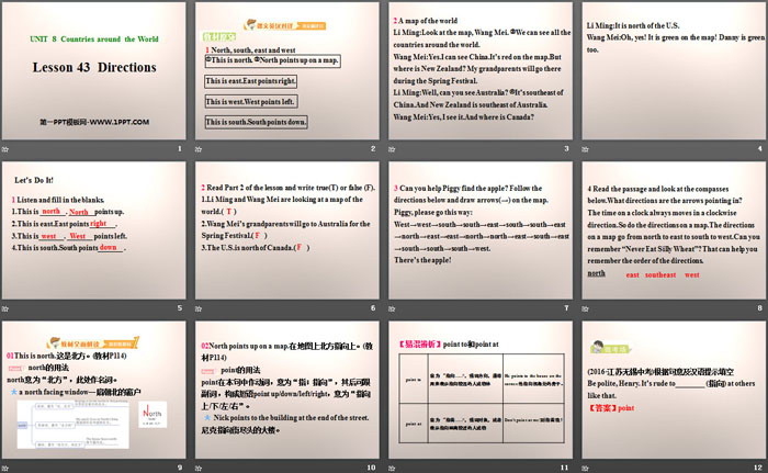 关键词:冀教版七年级上册英语PPT课件免费下载,DirectionsPPT下载,Countries around the WorldPPT下载,.PPT格式;