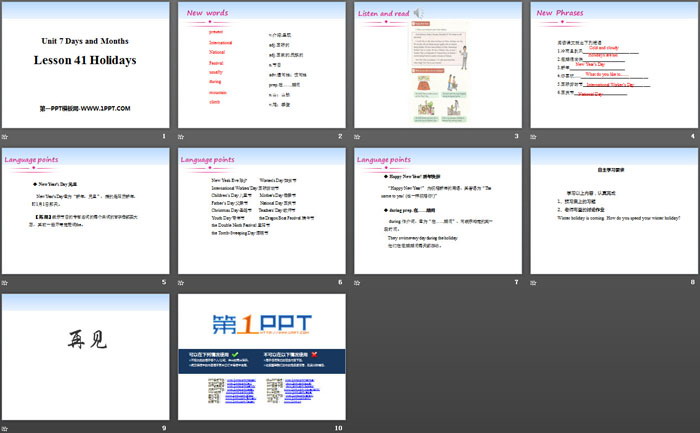 关键词:冀教版七年级上册英语PPT课件免费下载,HolidaysPPT下载,Days and MonthsPPT下载,.PPT格式;