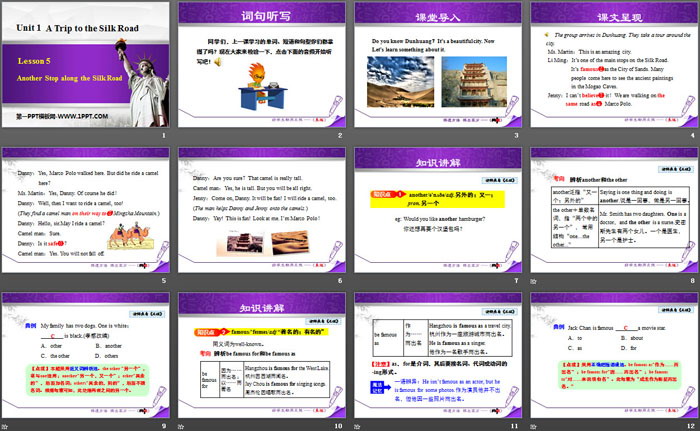 关键词:冀教版七年级下册英语PPT课件免费下载,Another Stop along the Silk RoadPPT下载,A Trip to the Silk RoadPPT下载,.PPT格式;
