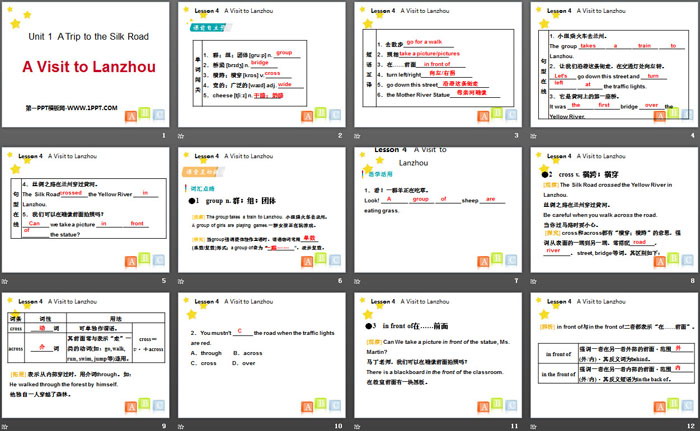关键词:冀教版七年级下册英语PPT课件免费下载,A Visit to LanzhouPPT下载,A Trip to the Silk RoadPPT下载,.PPT格式;