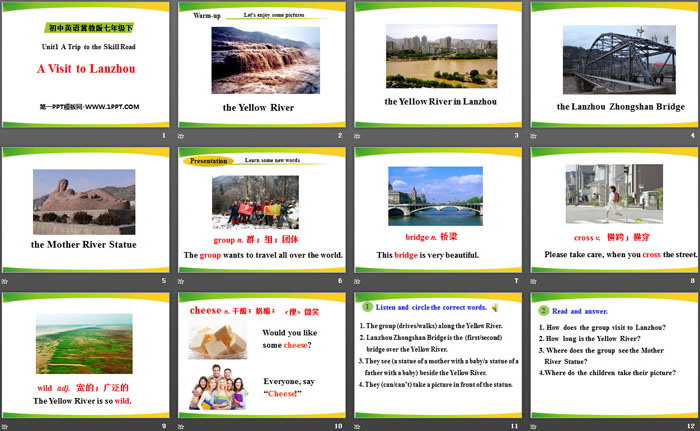 关键词:冀教版七年级下册英语PPT课件免费下载,A Visit to LanzhouPPT下载,A Trip to the Silk RoadPPT下载,.PPT格式;