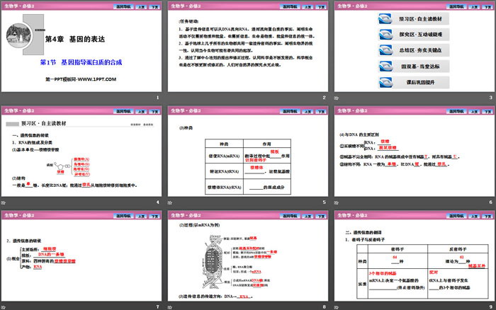 关键词:人教版高中生物必修二PPT课件免费下载,基因指导蛋白质的合成PPT下载,基因的表达PPT下载,.PPT格式;