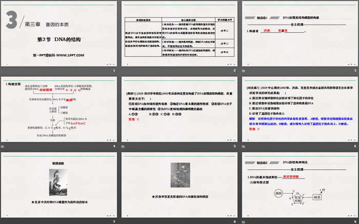 2.科学思维——通过模型构建,理解DNA的化学组成、平面结构以及立体结构。