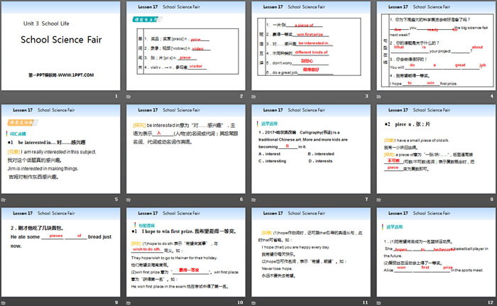 关键词:冀教版七年级下册英语PPT课件免费下载,School Science FairPPT下载,School LifePPT下载,.PPT格式;
