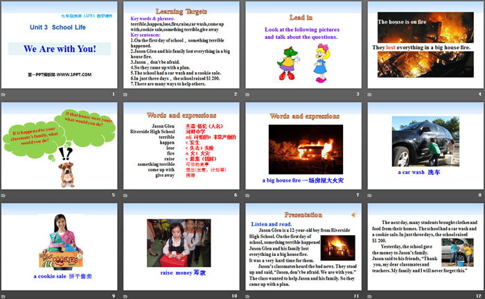 关键词:冀教版七年级下册英语PPT课件免费下载,We Are with You!PPT下载,School LifePPT下载,.PPT格式;