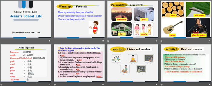 Jenny's School LifePPT,第三部分内容:activity