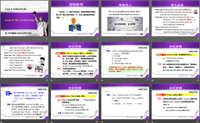 关键词:冀教版七年级下册英语PPT课件免费下载,How Is School Going?PPT下载,School LifePPT下载,.PPT格式;