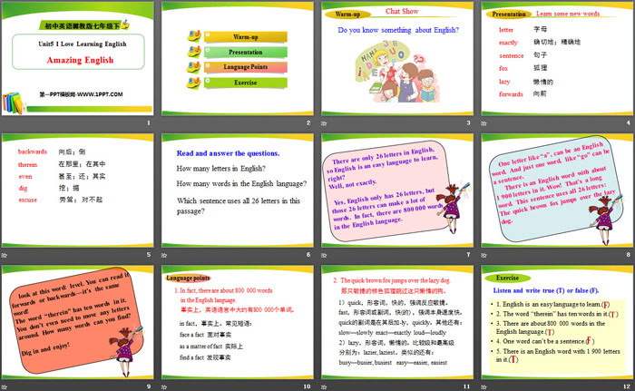 关键词:冀教版七年级下册英语PPT课件免费下载,Amazing EnglishPPT下载,I Love Learning EnglishPPT下载,.PPT格式;